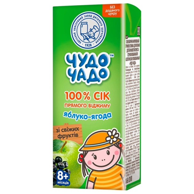 Сік дитячий Чудо-Чадо прямого віджиму Яблуко-ягода 200 мл (4820003689035)