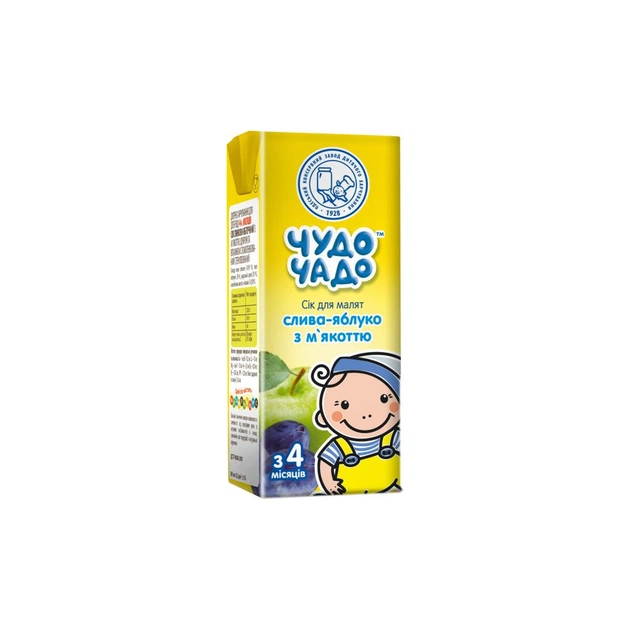 Сік дитячий Чудо-Чадо Сливово-яблучний з м'якоттю, цукром і вітаміном C 200 мл (4820016251700)