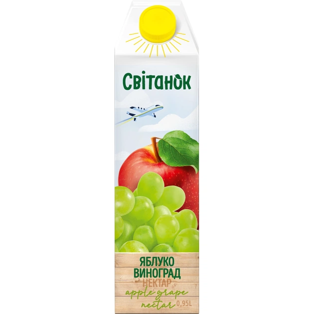 Сік Світанок Яблучно-виноградний нектар освітлений пастеризований з білих сортів винограду 950 мл (4820209563764)