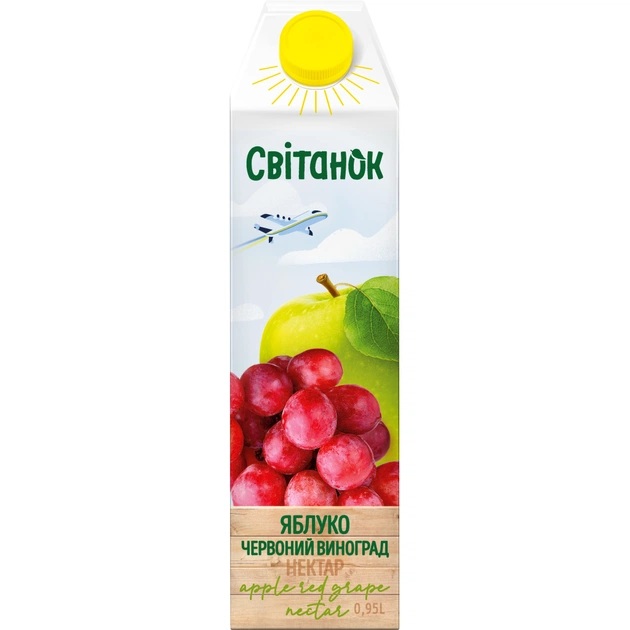 Сік Світанок Яблучно-виноградний нектар освітлений пастеризований з червоних сортів винограду 950 мл (4820209563801)