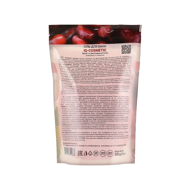 Особливості солі для ванни «Гранат та виноградні кісточки»: