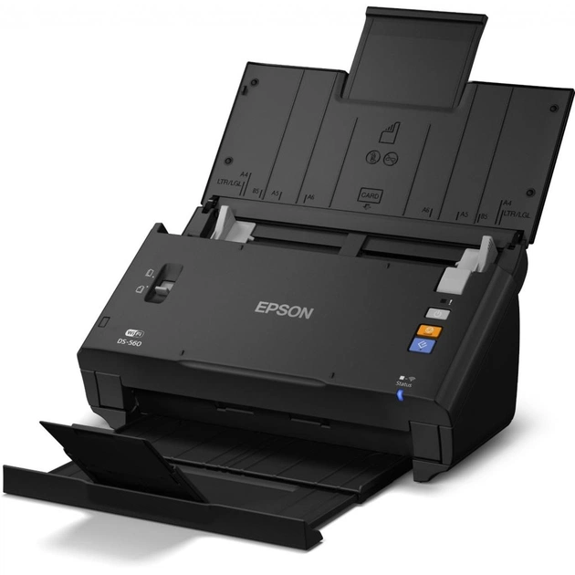 Epson WorkForce DS-560 оснащений функціями автоматичного визначення формату документа, розпізнавання і корекції нахилу, пропуску порожніх сторінок. Всі ці функції украй корисні при роботі з великим об'ємом паперової документації. Сканер оснащений також і ультразвуковим датчиком для виявлення злиплих і скріплених сторінок. Дана функція дозволяє уникнути одночасної подачі декількох аркушів в сканер і робить роботу пристрою більш ефективною. Крім можливості сканування бездротової мережі на комп'ютер або ноутбук, Epson WorkForce DS-560 підтримує бездротове сканування на мобільні пристрої та планшети на базі Android і iOS.