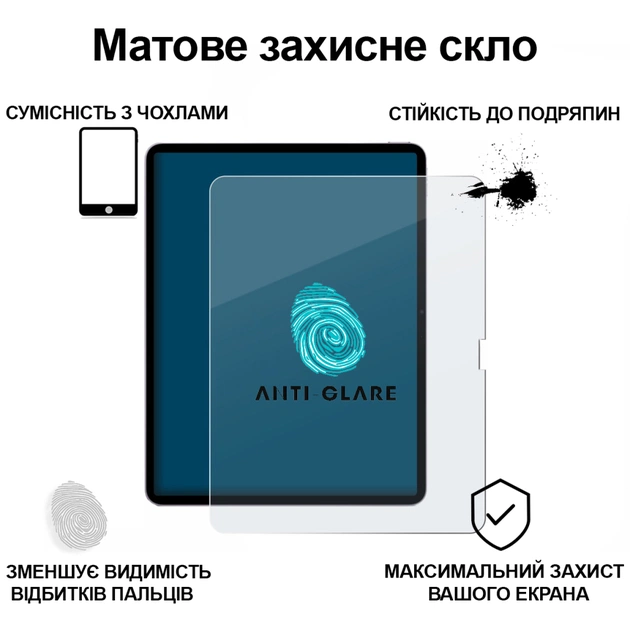✔ Матеріал: загартоване скло з матовим антибліковим покриттям (Anti-Glare)