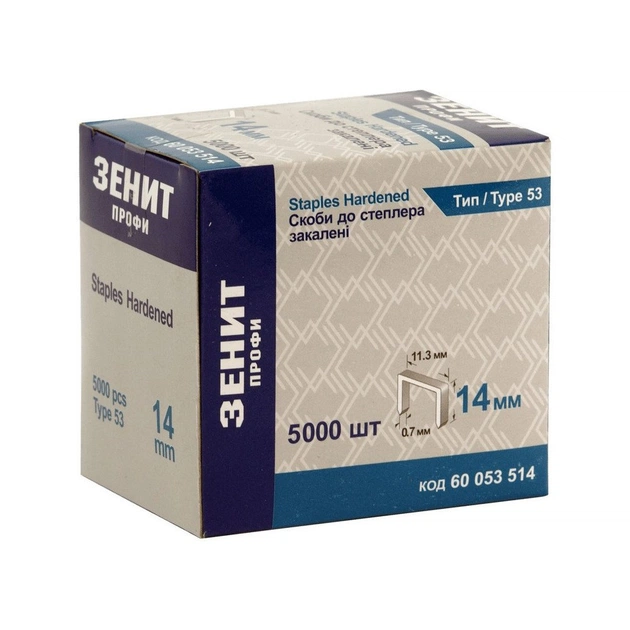 Скоби для будівельного степлера Зеніт "ПРОФІ" тип 53 скоба 14 мм 5000 шт (60053514)