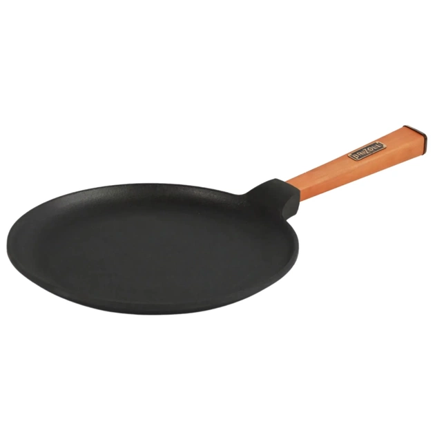 Сковорода Brizoll Optima чавунна з ручкою для млинців для млинців виготовлена з литого чавуну, ручка виконана з вільхи, має ергономічну форму і зручно лежить у руці. В асортименті сковорода представлена в діаметрі 220 і 240 мм. Низький бортик 15 мм, забезпечує зручність у приготуванні млинців, оладок, грінок тощо.
