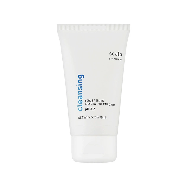 Для глибокого очищення шкіри голови фахівцями бренда Scalp було розроблено ефективний скраб-пілінг. Він містить комплекс з АНА- і ВНА-кислот, які сприяють ослабленню білкових зв'язків між ороговілими лусочками, і прискорюють процес їх відлущування. Також до складу засобу входить багатий корисними для епідермісу мінералами вулканічний попіл, що виконує роль ексфоліанту з делікатним впливом. Для м'якого заспокоєння шкірного покриву у складі продукту передбачені пантенол та алантоїн.