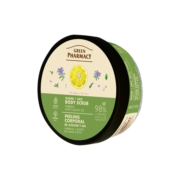 Позбавтеся будь-яких забруднень, негативних емоцій і подаруйте собі ідеальний догляд за допомогою цукрово-сольового скрабу для тіла «Вербена та олія солодкого лимона» бренда «Зелена Аптека».