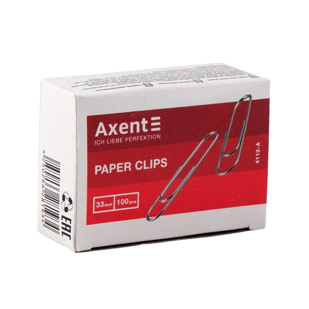 Скріпки канцелярські Axent нікельовані 33мм 100шт (картонна упаковка) (4112-A)