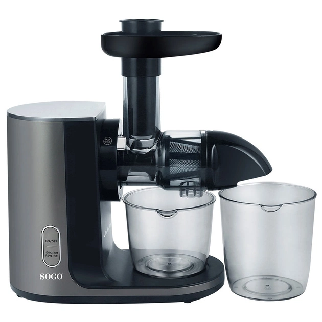 Блендер для овочів і фруктів геніального бренду Sogo дозволяє готувати соки, смузі або будь-які напої і креми здоровим способом. Він був виготовлений з думкою про добробут споживача. Його малопотужний механізм зрідження дозволяє отримати максимальну кількість поживних речовин із фруктів і овочів і витягнути більше соку, таким чином зменшивши їх небажане окислення.
