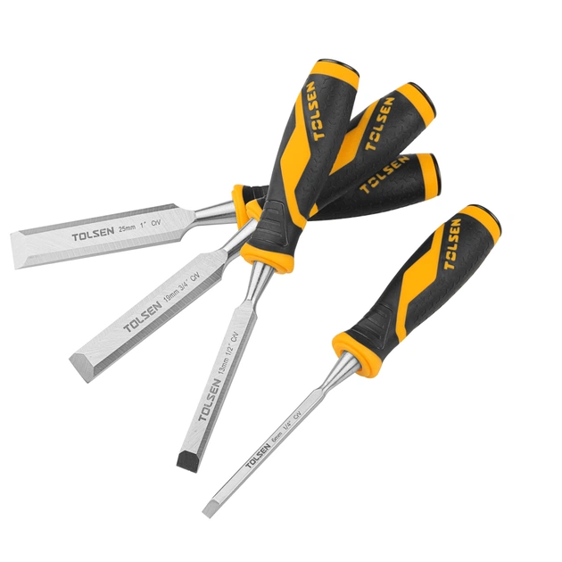 В комплект входять 4 стамески. Ручний інструмент призначений для видовбування невеликих поглиблень в деревині, зняття фасок, зачищення пазів, рельєфного і контурного різьблення під кутом 25°. Пристосування широко застосовується в работе столярами і теслями в багатьох галузях.
