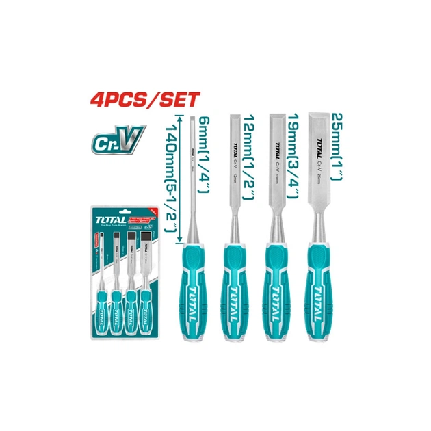 Набір стамесок Total THT41K0401 виготовлений із високоякісної Cr-V сталі з антикорозійним покриттям. Зручні ергономічні рукоятки з термопластичної гуми.