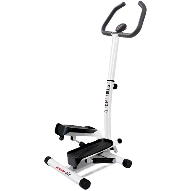 Mini Stepper STEP TWIST — це компактний тренажер для тренувань нижньої частини тіла, що дозволяє ефективно тонізувати сідниці, стегна та ноги, а також зміцнювати стегна та боки. Завдяки гідравлічним амортизаторам та механізму «twist» тренування стає більш різноманітним. Регульовані ергономічні ручки та антиковзкі педалі забезпечують комфорт під час занять. Оснащений LCD дисплеєм, який відображає основні дані тренування, такі як кількість кроків за хвилину, загальну кількість кроків, витрачені калорії, час і функцію сканування для перегляду всіх показників.