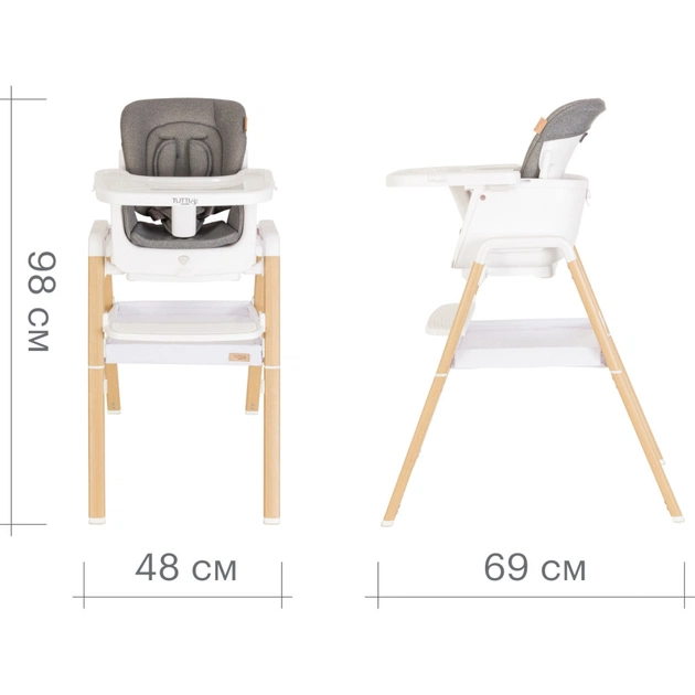 Розміри у зібраному вигляді (ДхШхВ), у модифікації дитячого стільця: 48x69x98 см