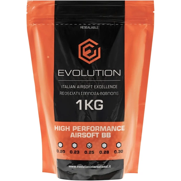 Страйкбольні кульки Evolution BB 6мм 0.25г High Performance White 1кг/уп (BBEA25-BOX)