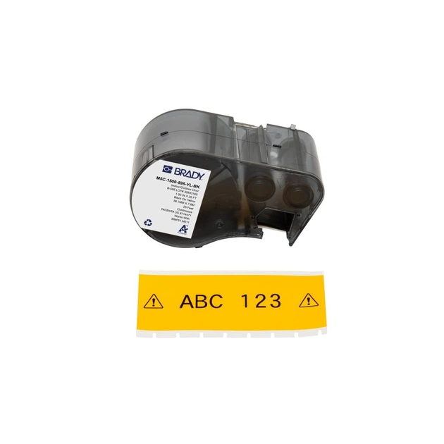 RADY M5C-1500-595-YL-BK, універсальні всепогодні етикетки, безперервна стрічка: 38,10 мм х 7,62м, чорним на жовтому, вініл, стрічка для принтерів BRADY M510 BMP51 BMP53 M511