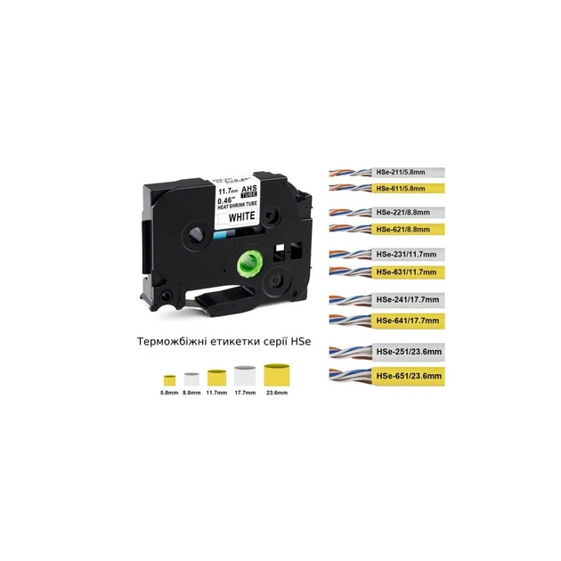 Стрічка для принтера етикеток UKRMARK B-HS241, аналог HSe241, термозбіжна 5,4-10,6мм, 17,7мм х 1,5м, black on white (900383)