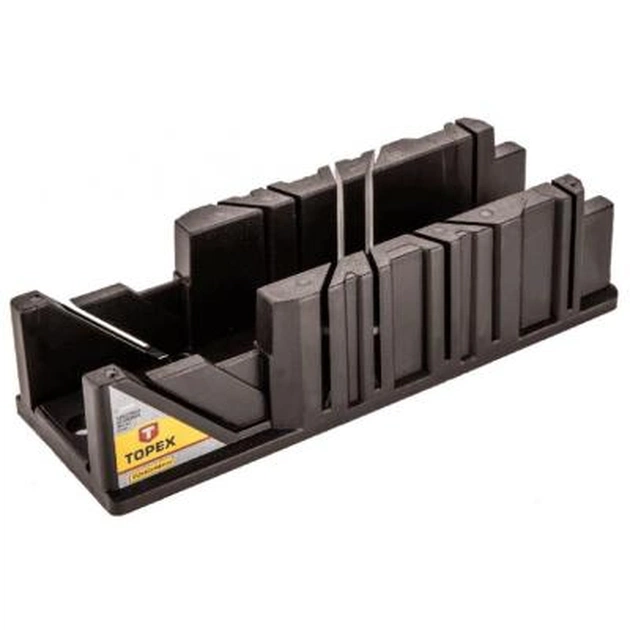 Пластмасове стусло TOPEX 320x120x75 мм (10A846) використовують для акуратного ручного різання прямолінійних дерев'яних заготовок, рейок або плінтусів. Даний шаблон забезпечить рівний пропил, точно дотримуючись певного кута нахилу (22.5°, 45° і 90°). Це ідеальний помічник для виготовлення кількох однакових за формою деталей. Сам виріб виконано з міцного зносостійкого пластику і має стандартну П-подібну форму, з висотою стінок 75 мм.На корпусі пластмасового стусла TOPEX (10A846) розташовані рівні наскрізні пропили для різу під кутом 22.5°, 45° і 90°. Така конструкція дає можливість отримати акуратний і максимально точний різ в поперечному і кутовому перерізі.