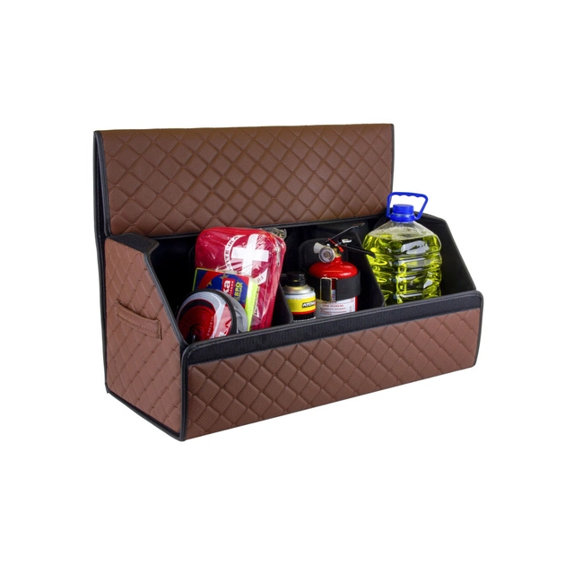 Органайзер EVAtech ECO легкий і зручний у використанні, швидко складається і фіксується на міцні липучки. Всередині з обох боків вшиті резинки для фіксації речей, ззовні по бокам сумка оснащена двома ручками для зручного транспортування. Додатково використано систему липучок на дні та збоку для надійної фіксації органайзера у багажнику.