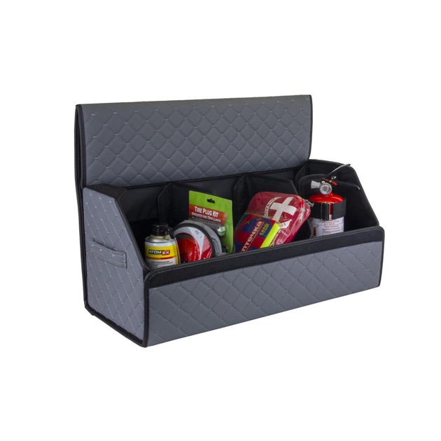 Органайзер EVAtech ECO легкий і зручний у використанні, швидко складається і фіксується на міцні липучки. Всередині з обох боків вшиті резинки для фіксації речей, ззовні по бокам сумка оснащена двома ручками для зручного транспортування. Додатково використано систему липучок на дні та збоку для надійної фіксації органайзера у багажнику.