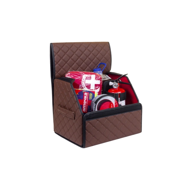 Органайзер EVAtech ECO легкий і зручний у використанні, швидко складається і фіксується на міцні липучки. Всередині з обох боків вшиті резинки для фіксації речей, ззовні по бокам сумка оснащена двома ручками для зручного транспортування. Додатково використано систему липучок на дні та збоку для надійної фіксації органайзера у багажнику.