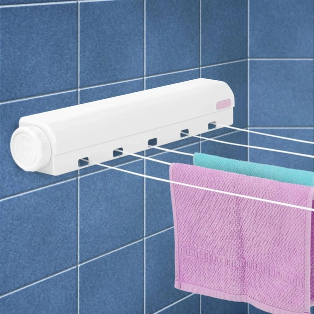 Casa Si Casa Line 5 White - надзвичайно компактна сушарка для дому. Вона кріпиться на стіну і розкладається тільки у випадку необхідності. Сушарка обладнана системою втягування мотузок, що забезпечує натягування при розкладанні і швидке збирання після використання. Casa Si Casa Line 5 White має 5 мотузок, які розтягуються до 3.75 м, що складає до 18.7 метрів корисної робочої поверхні і дозволяє розмістити для сушіння білизну після двох циклів прання стандартної п'ятикілограмової пральної машинки. Якщо мотузки розмотаны не на повну довжину, - сушарка обладнана системою, що блокує їх на певній відстані і запобігає провисанню. Виготовлена сушарка з якісного пластику, що дозволяє навантажувати її до 15 кг.