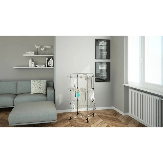 Сушарка для білизни підлогова Colombo Icaro - це чудовий компроміс між необхідністю сушіння великої кількості одягу та економією простору. Конструкція постачається в зібраному стані, вам достатньо тільки закріпити коліщата та пластикові накладки. Модульна система забезпечує можливість розміщення сушарки в душовій кабіні або в близь стіни, склавши одну сторону. Сушіння довгих речей не є проблемою для Colombo Icaro, закріпіть речі за верхню секцію та складіть нижні, які перешкоджають вільному звисанню.