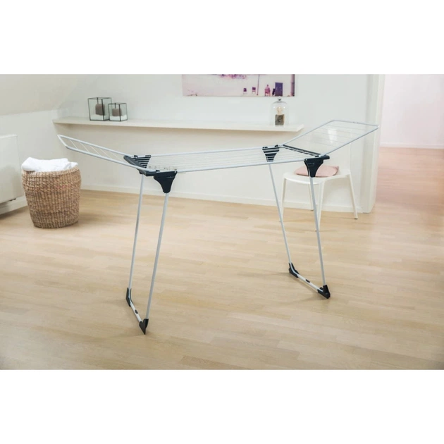 Сталеві елементи конструкції мають антикорозійне покриття. Одну з опорних стійок обладнано роликовим механізмом, завдяки якому переміщення всієї конструкції по житловому приміщенню стало надзвичайно легким і максимально безпечним щодо поверхні підлоги. Надійна, практична та зроблена з екологічно чистих матеріалів сушарка для білизни Gimi Rialto 18 стане надійним помічником як у приватному будинку, так і у квартирі.