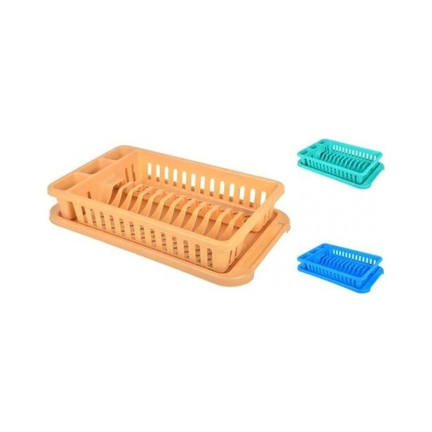 Матеріал – пластик. Довжина: 42 см. Ширина: 27 см. Висота: 8 см. Сушарка в один ярус із піддоном. Форма прямокутна. Кольори в асортименті. Виконана в сучасному дизайні, практична, легка, вологостійка та міцна.
