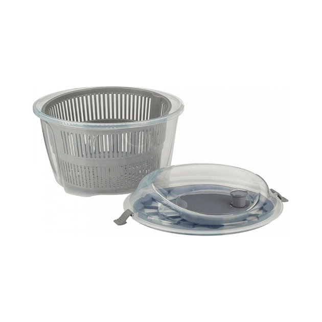 Сушарка для салату KELA Mailin за допомогою технології обертання допоможе злити зайву воду з вимитого листя салату, свіжого шпинату, руколи і т.д. Просто помістіть овочі всередину, закрийте кришку та поверніть ручку, яка знаходиться на верхній частині пристрою. Центрифугована вода надходитиме на дно контейнера. Картридж сушарки також можна використовувати як друшляк.