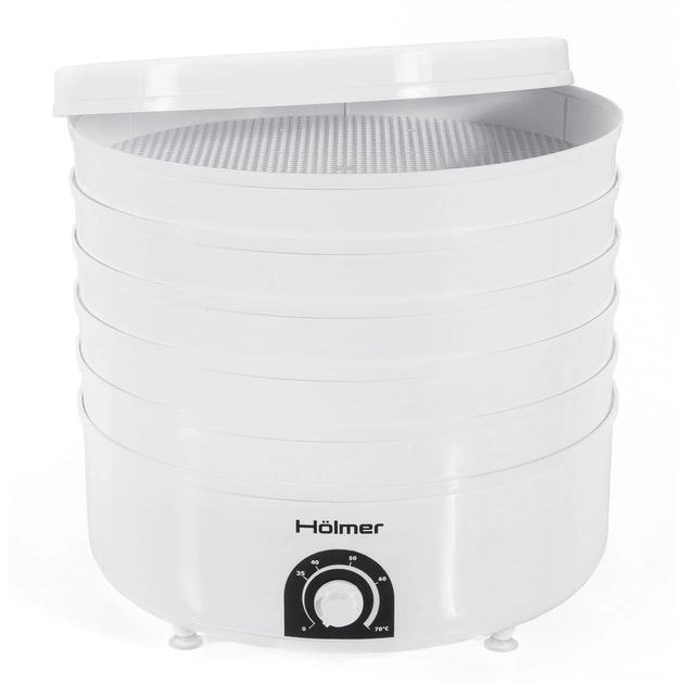 З п'ятьма незалежними піддонами діаметром 32,5 см і висотою 4 см, сушка Holmer HFD-51W дозволяє сушити різні типи продуктів одночасно, забезпечуючи вони не змішуються між собою. Вона ідеально підходить для сушіння овочів, фруктів, ягід, трав, грибів, риби та багато іншого. Окрема насадка призначена для дрібних ягід, а також можливість приготування домашньої пастили робить її універсальним рішенням для кожної кухні.