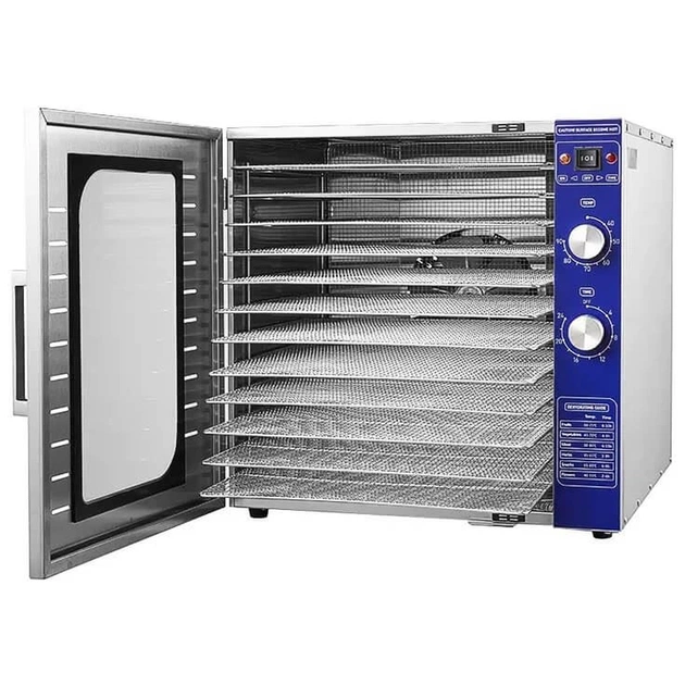 - 12 лотків із харчової нержавіючої сталі SUS304 — витримують високу температуру, не піддаються корозії, легко миються.