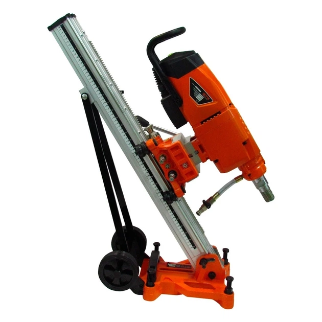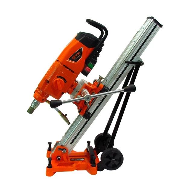 Бурильна установка GTM DK-406/3 - електрообладнання для мокрого буріння отворів в бетонних, кам'яних, цегляних і гранітних поверхнях за допомогою алмазних коронок. Представлена модель фіксується на спеціальній стійці (станині), яка входить в стандартну комплектацію. Підключається до системи водяного охолодження і дозволяє проробляти отвори діаметром до 406 мм. Алмазна коронка кріпиться безпосередньо до шпинделя без використання патрона.
