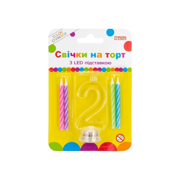 Свічка Maxi 4 шт. на торт з LED підставкою "2", що світиться (MX701007-2)