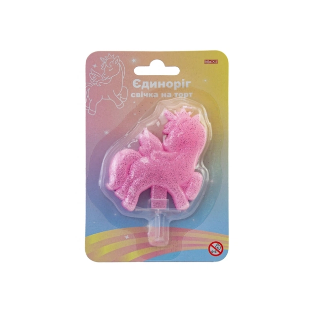 Свічка Maxi на торт "Єдиноріг" з блискітками, розмір 65x72 мм (MX624051)