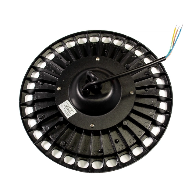 Кругла форма світильника та елегантний чорний колір додають стильності до будь-якого інтер'єру. Завдяки зручному підвісному типу монтажу, ви можете регулювати висоту кріплення, легко інтегруючи світильник в потрібне вам місце. Це робить його ідеальним для приміщень з високими стелями, таких як склади, виробничі зали, або торгові центри.