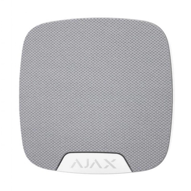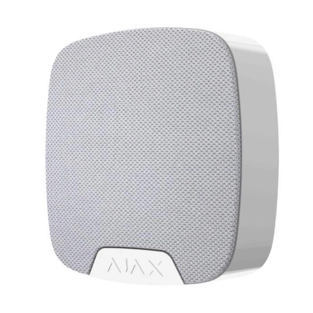 Безпроводова звукова сирена Ajax HomeSiren з налаштованим рівнем звуку від 81 до 97 дБ і роз'ємом для підключення зовнішнього світлодіода.