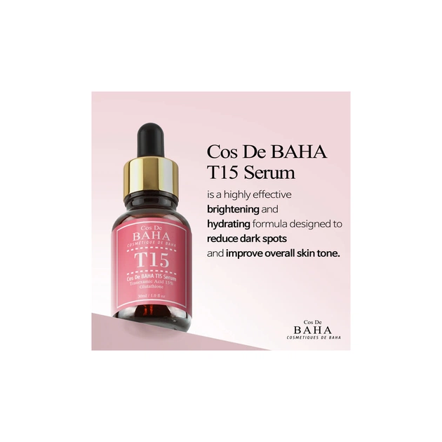 Сироватка для обличчя Cos De BAHA T15 Serum Освітлювальна З транексамовою кислотою 15% і глутатіоном 30 мл (8809240319451)