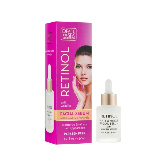 Пора попрощатися зі зморшками, тонкими лініями та заломами, адже Retinol anti Wrinkle Facial Serum бренда Dead Sea Collection позбавить вас від «негативних» наслідків впливу навколишнього середовища та вільних радикалів! У складі засобу містяться ретинол і натуральні мінерали Мертвого моря, що сприяють глибокому зволоженню та живленню шкіри! При щоденному використанні сироватки ви отримаєте гладеньку шкіру, рівний тон і «другу молодість»!