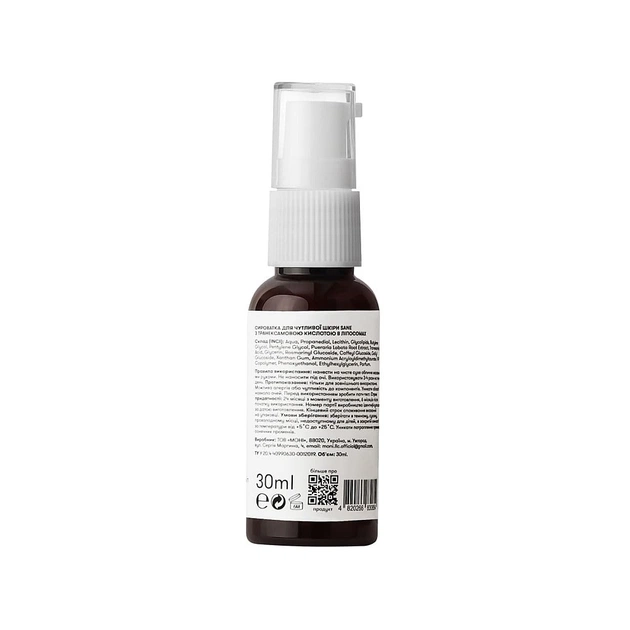 Сироватка для чутливої шкіри з транексамовою кислотою в ліпосомах від бренду Sane покликана заспокоювати та освітлювати лице, усувати подразнення чи прояви куперозу. Засіб забезпечує миттєву дію завдяки ліпосомам, що здатні проникати в найглибші шари шкіри. Сироватка допомагає боротися з розацеа та куперозом, гіперчутливістю й сухістю обличчя. Для кращого ефекту засіб можна комбінувати із захисним кремом для обличчя від Sane.