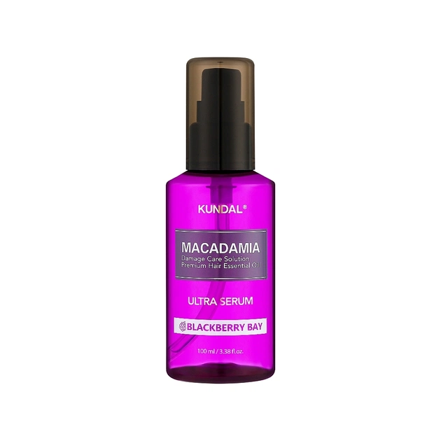KUNDAL Macadamia Ultra Blackberry Bay – завдяки концентрованому складу сироватка забезпечує швидкий косметичний ефект, повертає тьмяному, ламкому і ослабленому волоссю енергію і силу, робить його гладким і шовковистим. Містить велику кількість корисних інгредієнтів, створює невагому плівку, що захищає пасма від негативного впливу ультрафіолетового випромінювання та високих температур, що перешкоджає втраті природної вологи. Олія макадамії насичує локони вітамінами та мінеральними речовинами, бореться з ламкістю і посіченими кінчиками, усуває сухість, надає природного блиску. Арганова олія живить, зволожує волосся, робить його більш пружним і міцним. Сироватка має чудовий аромат квітучої вишні, який легким шлейфом залишається на волоссі.