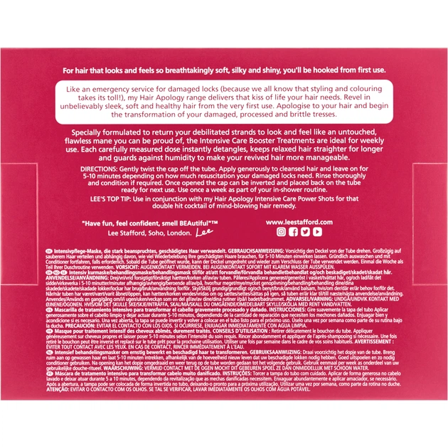 Hair Apology – серія, створена фахівцями бренда Lee Stafford для інтенсивного догляду за сильно пошкодженим волоссям. Вона, немов машина часу, дає змогу повернути час назад, повертаючи локонам красу, силу і сяйво. У складі формули косметичних продуктів з лінійки - пантенол, вітамін Е, гідролізовані протеїни пшениці, масла какао і ши, алое вера і екстракт насіння соняшнику. Компоненти «реставрують» травмовану структуру, відновлюють баланс вологи і дарують кудрям еластичність. Бажаєте відновити красу локонів? Вибирайте засіб для інтенсивного лікування, який увійшов у repair-колекцію, від Lee Stafford!