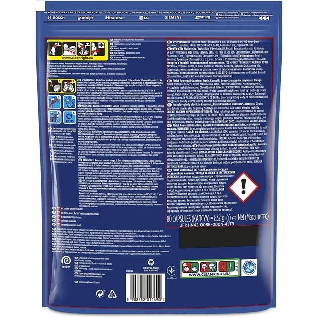 Finish Quantum Ultimate має унікальну 3-камерну технологію капсул та рідкий powerball для забезпечення максимальної чистоти та блиску.