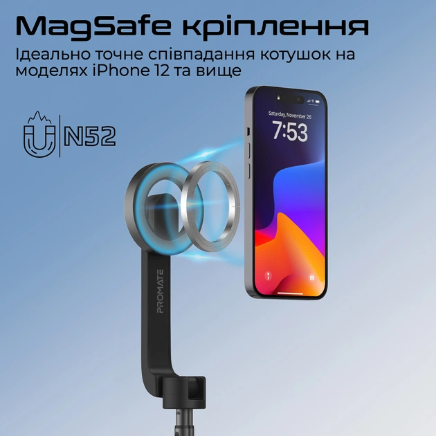 Promate MagStick - ідеальна селфі-палка з функцією триподу для створення якісних знімків. Зручність, універсальність та стильний дизайн в одному гаджеті.