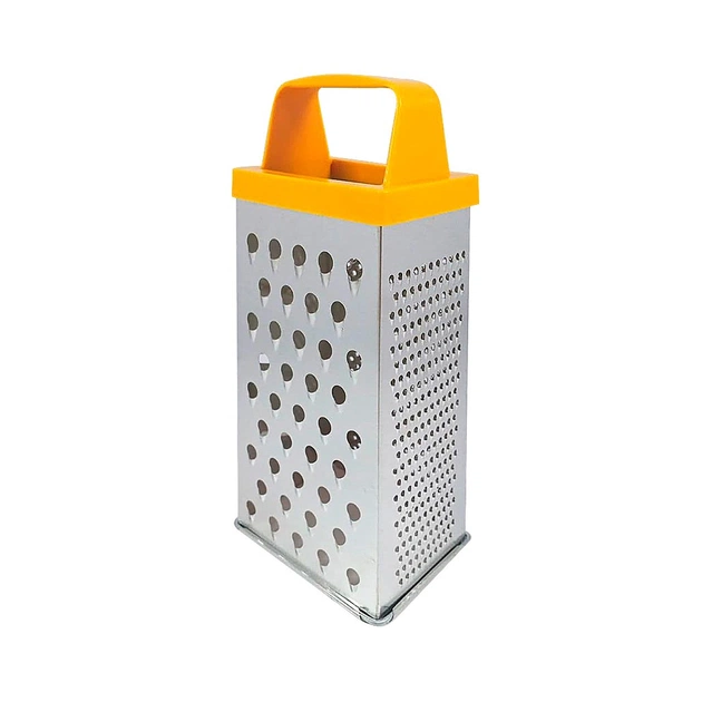 Кухонна терка класична Gusto — якісна модель з пластиковою ручкою. Терка має 4 ріжучі поверхні: широка грань з круглими різцями 6 мм, вузька грань з круглими різцями 2 мм, вузька грань з круглими різцями 3 мм, широка грань з різцями 4 мм. Виконана з харчової жерсті, підходить для всіх продуктів і не окисляє їх.