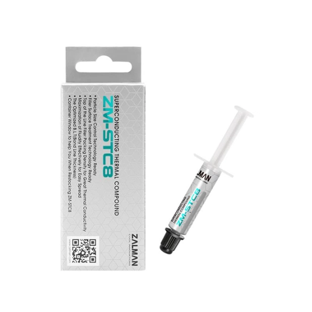З термопастою Zalman ZM-STC8 вас ніколи не потурбують перебої в роботі комп’ютера через його перегріву процесора. Модель відрізняє зручна упаковка, завдяки чому з нею зручно працювати і також комфортно згодом зберігати залишки невикористаного матеріалу. До достоїнств ZALMAN ZM-ЅТС8 можна віднести вражаючу теплопровідність. З ZALMAN ZM-ЅТС8 все тепло, створюване процесором, буде передаватися встановленій системі охолодження.