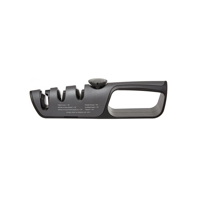 Продукція Risam Kitchen відрізняється доступними цінами і непоганою якістю матеріалів, використовуваних у виробництві. Risam Kitchen пропонує споживачу широкий вибір:- Компактних електро-точил і портативних точил для кухонних ножів.- Класичних мусатів для виправлення нерівномірності різальної кромки.- Легких портативних точил для правки і заточування різальної кромки ножа в польових умовах.Настільне точило для ножів та ножиць. Кут заточування можна змінювати за допомогою спеціального барабанчика. Для зручності на одній з поверхонь точила вказані рекомендовані кути для різних видів ножів.