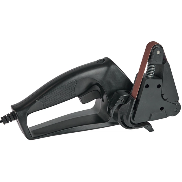 В комплекте идет вспомогательная плоская поверхность, которая поможет шлифовать места на инструментах с прямой поверхностью для заточки. В случае ее снятия, гибкий абразивный ремень поможет полировать изогнутые поверхности. В комплекте поставляется абразивный ремень 320 зернистости. Питается электроточило Risam RE009 от сети 100-240 В.