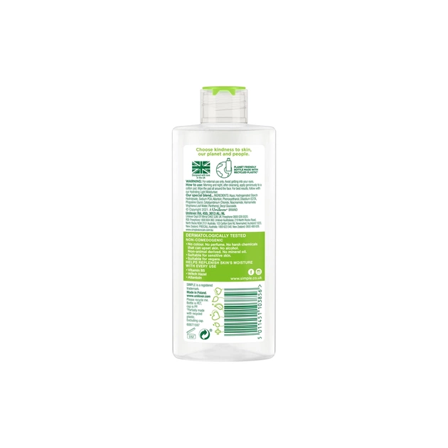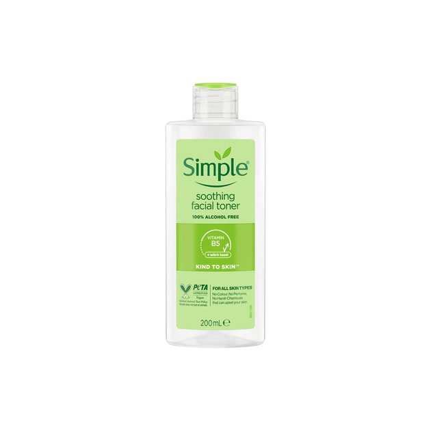 Тонік бренду Simple підходить для всіх типів шкіри. Дерматологічно протестовано.