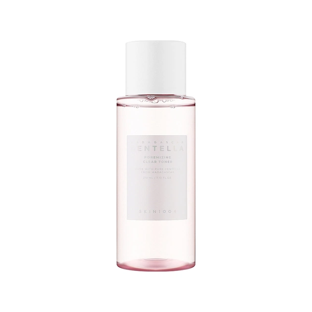Виготовлений на основі екстракту центелли азіатської та збагачений рожевою гімалайською сіллю тонер Madagascar Centella Poremizing Clear Toner бренда Skin1004 делікатно усуває залишки забруднень зі шкіри, звужує розширені пори та забезпечує себорегулювальну дію. Він сприяє підвищенню життєвого тонусу епідермісу, робить його більш шовковистим.