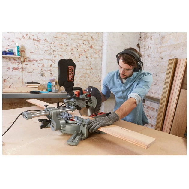 Торцювальна пила Black&Decker 1600 Вт, диск 216х30 мм, 4800 об/хв, XPS, вага 12 кг (BES700)